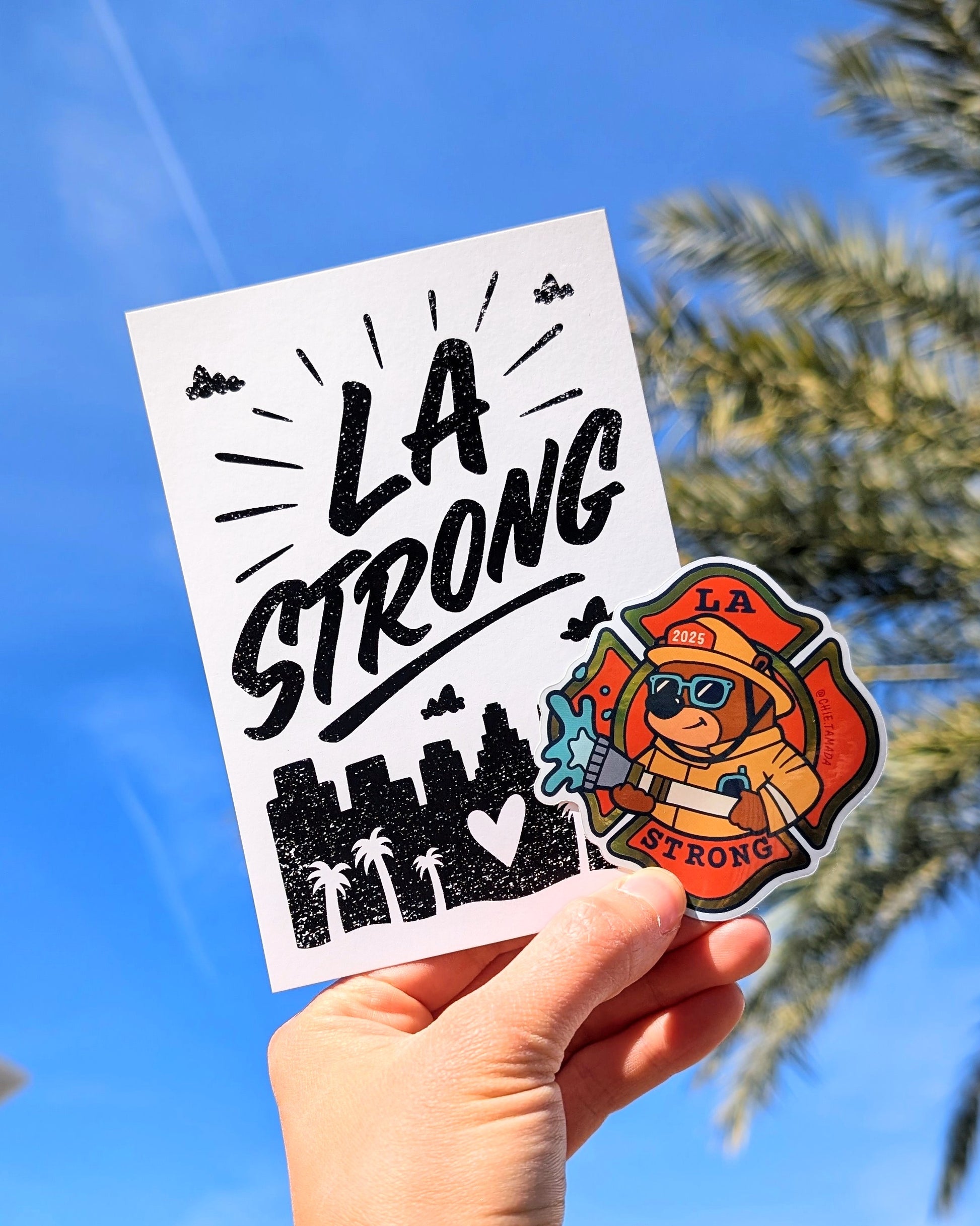 Each postcard purchase will come with a LA Strong Firefighter Bear sticker. 🐻🚒