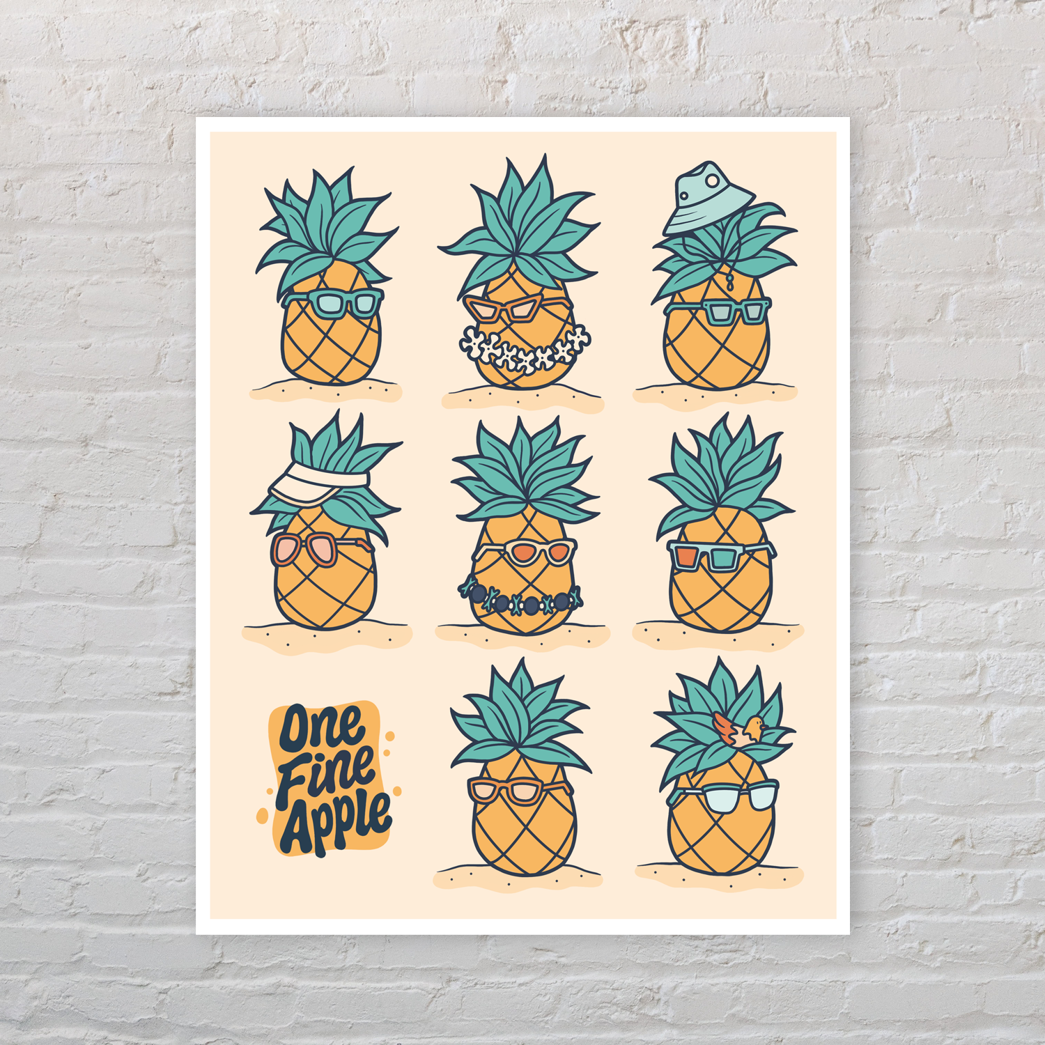 Pineapple Character Illustration Wall Art Print