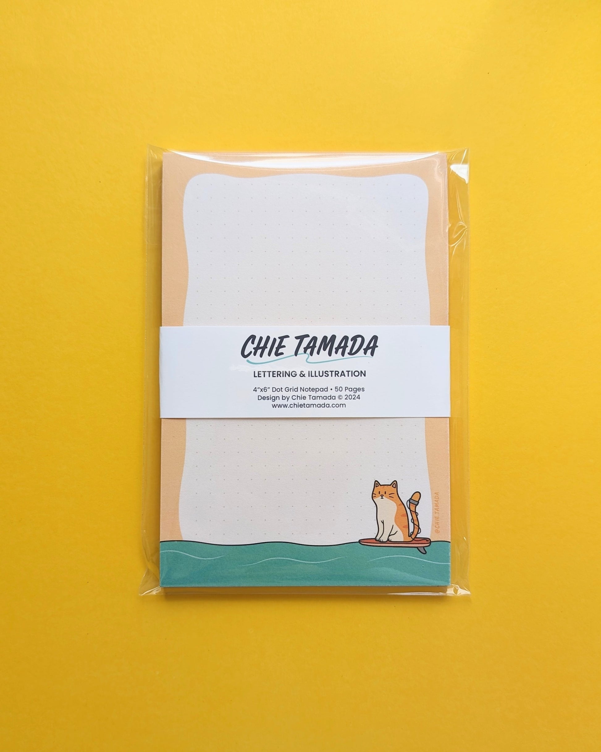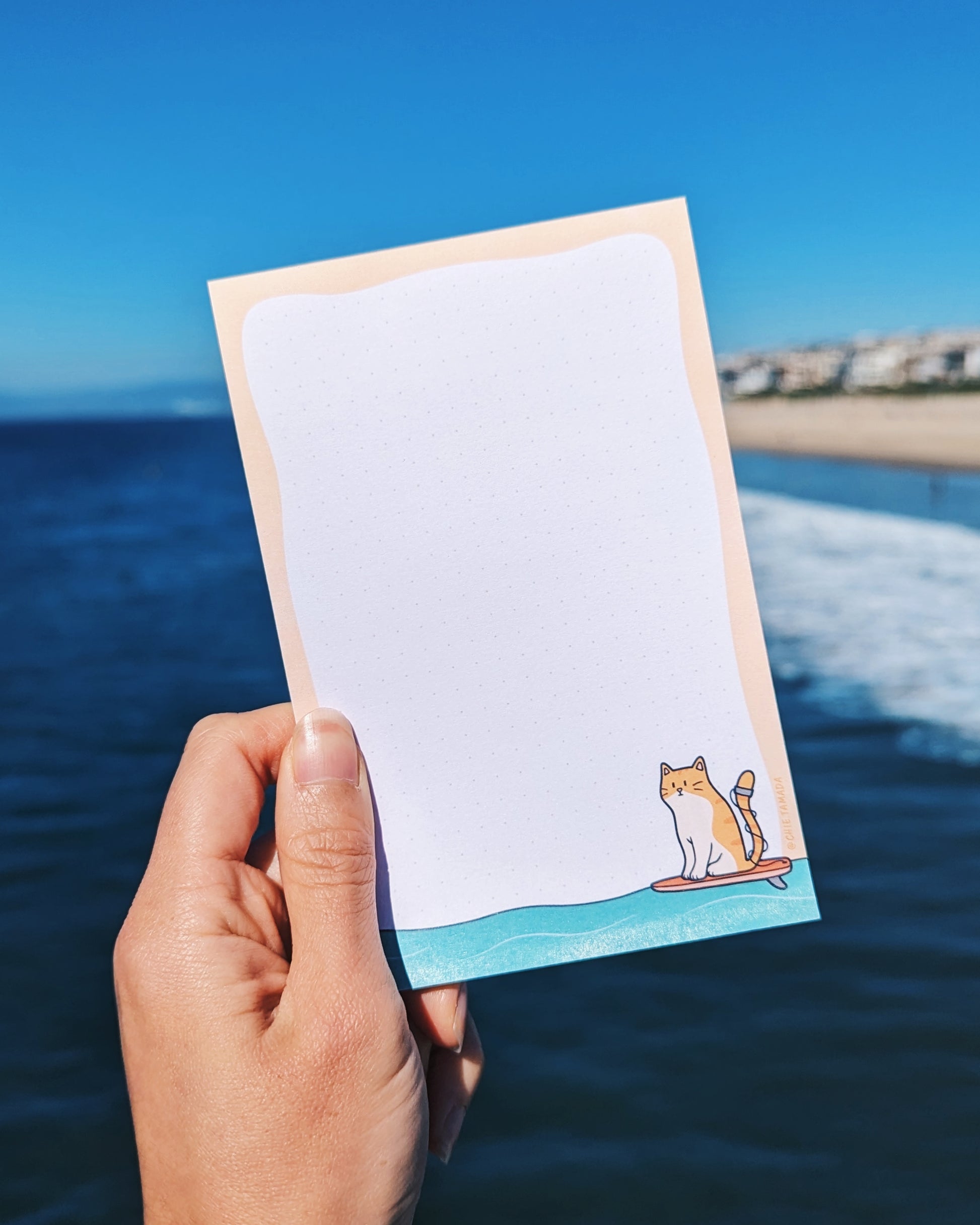 The perfect stationary staple to write your to-do list or sketch out your ideas. Featuring playful illustrations of a cat surfing by the sea.